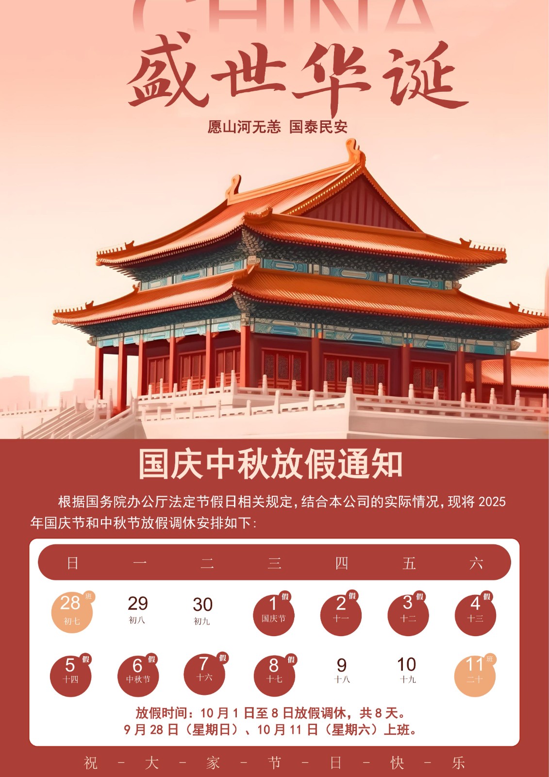 2025年国庆中秋放假安排